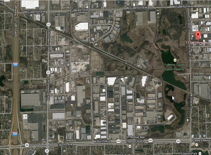 If you are traveling from the west you can take I88 east to I355 north to Illinois 64 North Avenue east to Westwood Avenue north or left to Factory Road west or left to Grace Street north or right. You can see the Lewis Plastics docks are on the corner of Grace Street and Withrop Avenue.